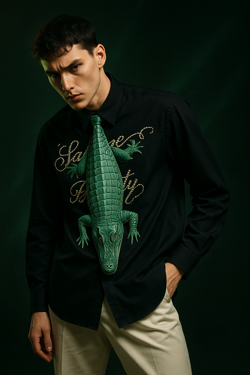 Christmas Novelty Tie – Alligator Shape in Taffeta Silk – Funny Holiday Gift for Men